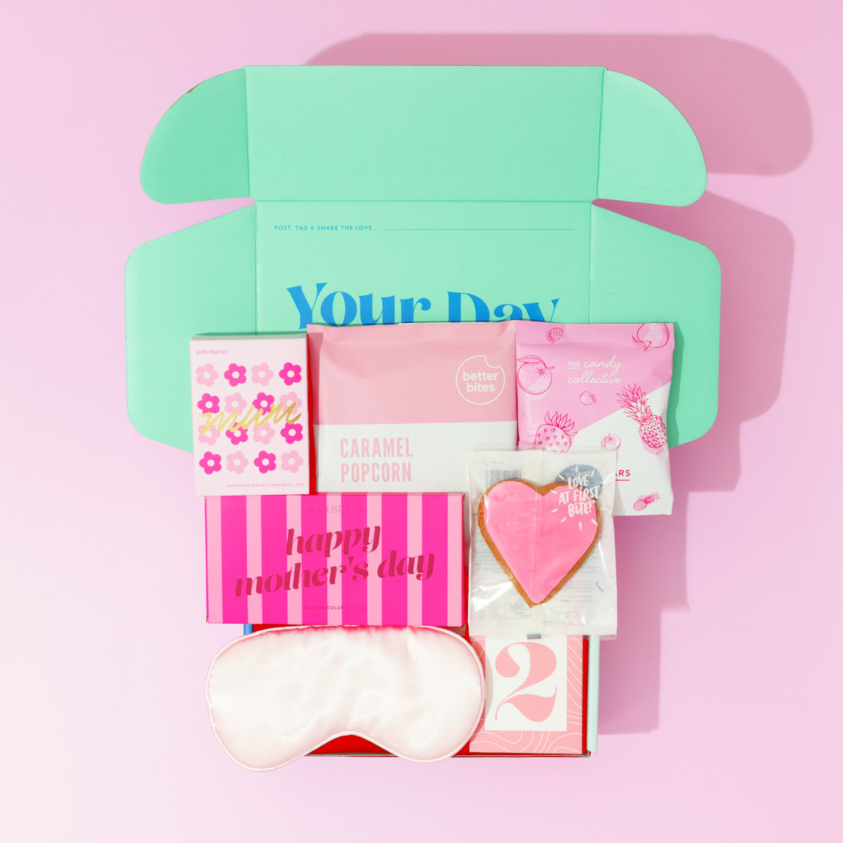 The Hey Mama gift box is here to pamper her like a queen! This luxurious gift box is all about indulgence and relaxation, featuring a pink Luxury Satin Eyemask that's fit for a queen's beauty sleep. Coupled with cookies, and other sweet treats, this gift is the perfect blend of relaxation and sweetness for Mother's Day.