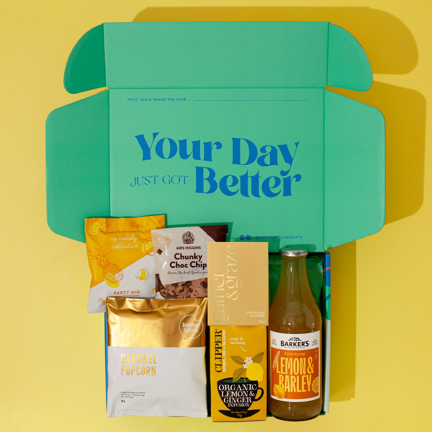 Send comfort and care when it’s needed most with The Get Better Soon, a thoughtful gift box designed to lift spirits and soothe the soul. Filled with gentle, feel-good flavours, it features Clipper Lemon & Ginger Tea and Barker’s Lemon & Barley Syrup, the perfect pairing for rest and recovery. A mix of sweet treats like chocolate almonds, popcorn, cookies, and colourful lollies adds a cheerful touch, making this the perfect pick-me-up for anyone who could use a little sunshine in their day.