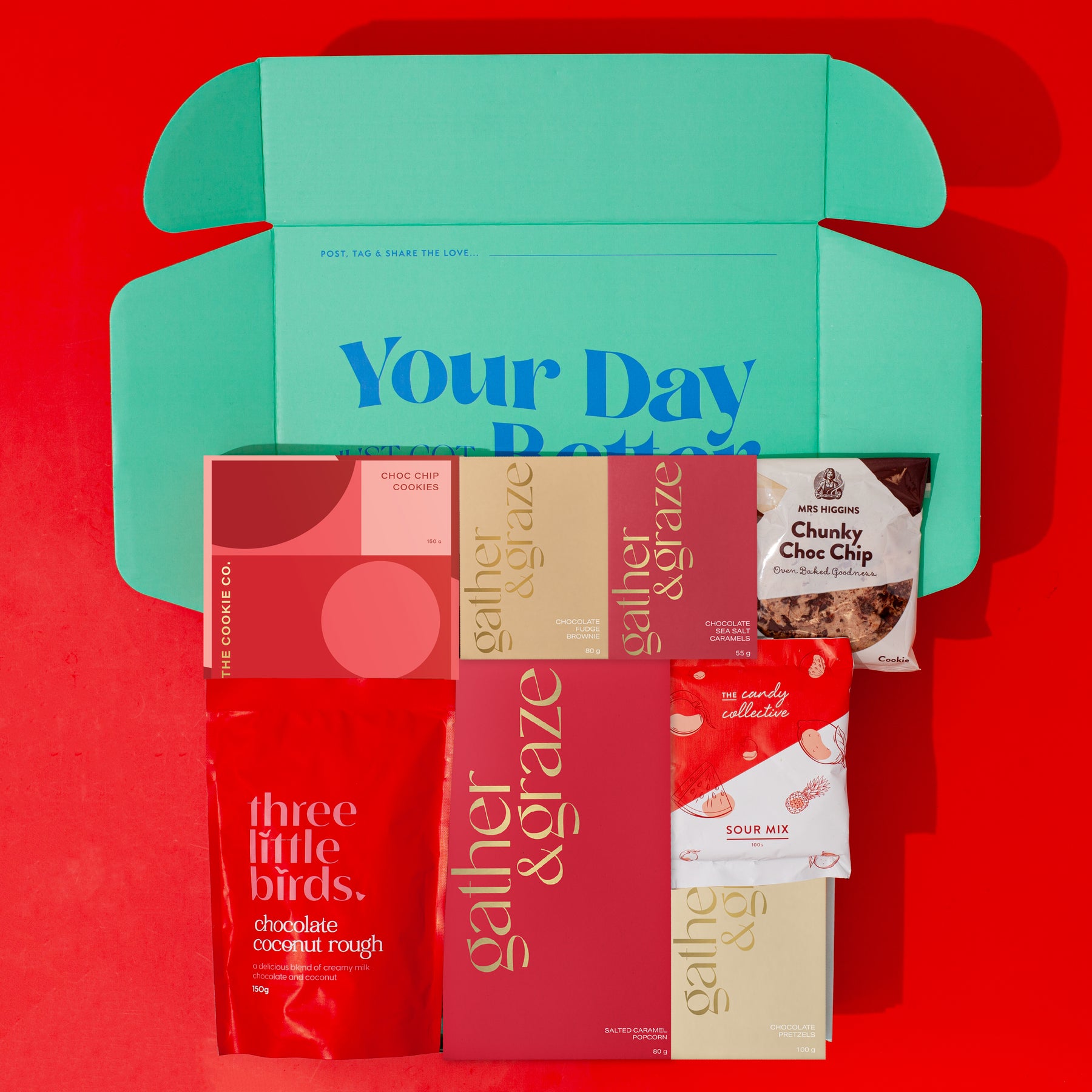 Loaded with a solid selection of sweet treats, this gift box is designed for a sugar lover. From a chocolate brownie and coconut rough, to caramel popcorn and sweet & salty chocolate pretzels, their sweet tooth will be perfectly satisfied.